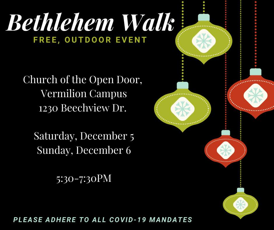 Bethlehem Walk Free, Outdoor Event Church of the Open Door December 5th & December 6th
