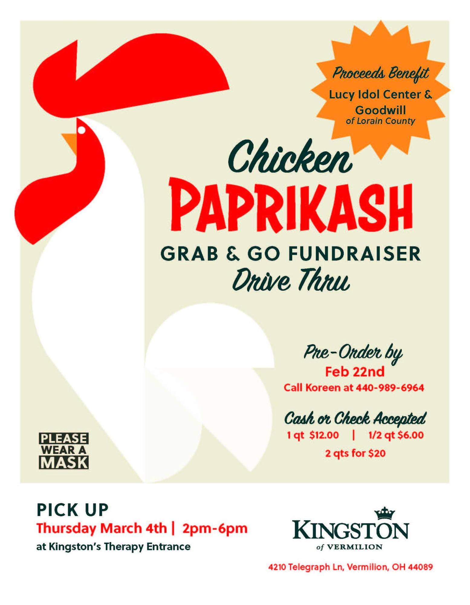 Chicken Paprikash Grab & Go Fundraiser- Drive Thru Event at Kingston of Vermilion