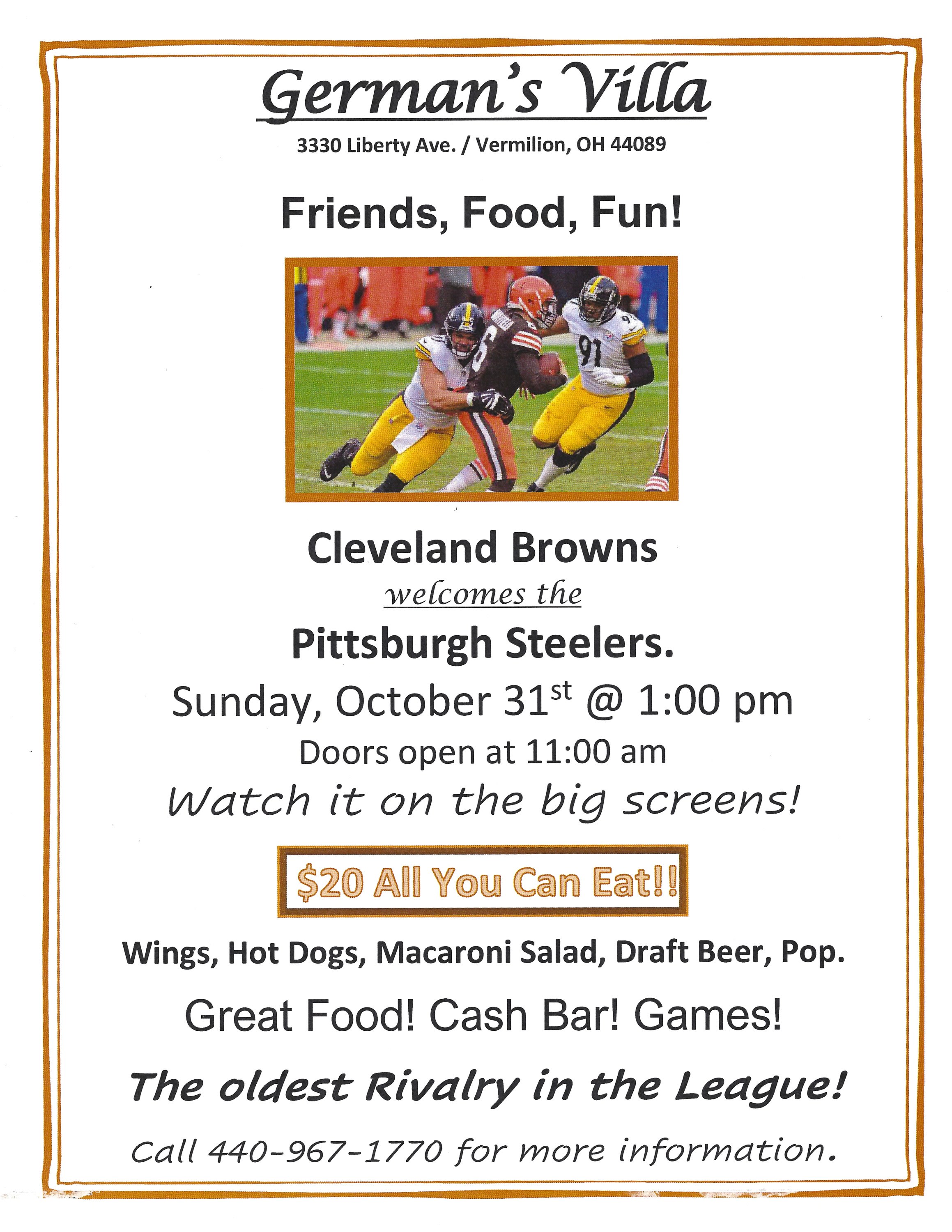 German's Villa Cleveland Browns vs Pittsburgh Steelers
