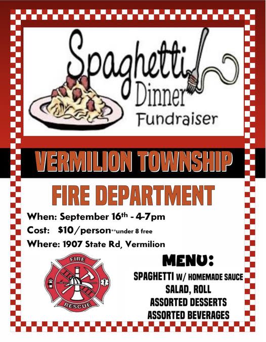 Vermilion Township Fire Department Spaghetti Dinner Fundraiser