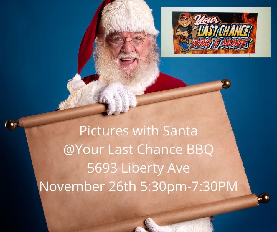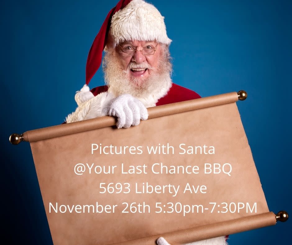 Come join our family celebration that we have done for 5yrs!! At 5:30 on November 26 the real Santa will show up in his actual sleigh ONLY at Your Last Chance BBQ!! You can get into his sleigh as a family and take FREE pictures with Santa!! Yes I said FREE!! No waiting in long lines and paying money to take a picture with a imposter (lol) all we ask is you shop your small business and enjoy some of our food! We also add something new every year!! And this year me and my wife made a life size ginger bread house. Hope to see all because Santa knowsImages