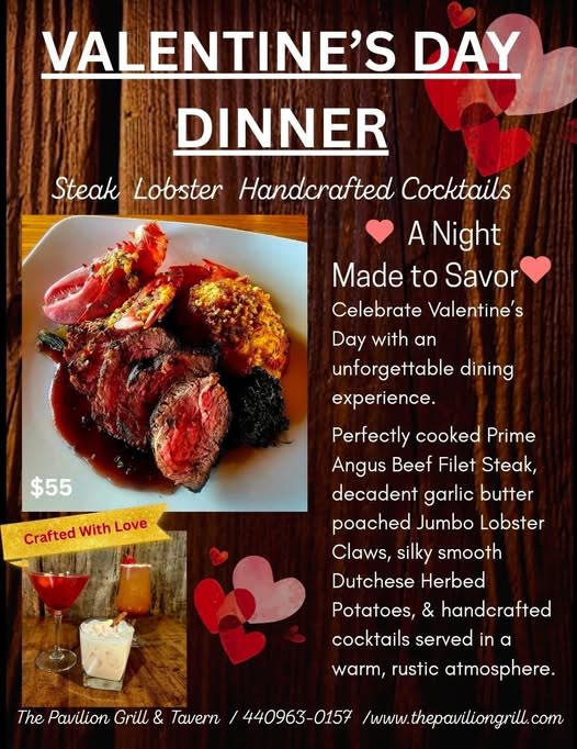 Love tastes better over a perfectly cooked steak, buttery lobster, and a handcrafted cocktail (or two)! This Valentine’s Day weekend, The Pavilion Grill & Tavern is serving up rustic romance you can savor…bite, sip, and soak in every moment. Dine-in, carryout, or Doordash your way to a night made for love!