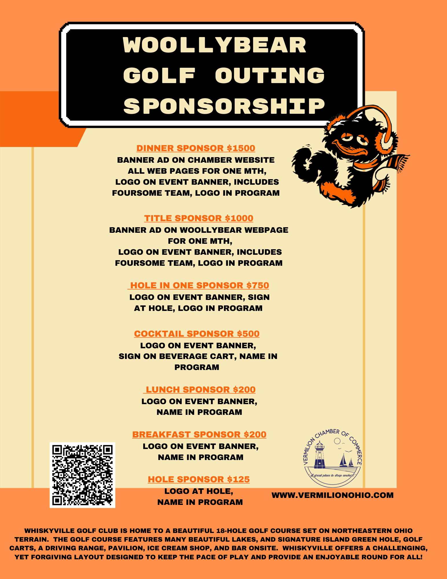 Please join us for the 38th Annual Woollybear Golf Outing Friday, September 8th at Whiskyville Golf Club. Shotgun start 8:30am Four-Some Golf Scramble.