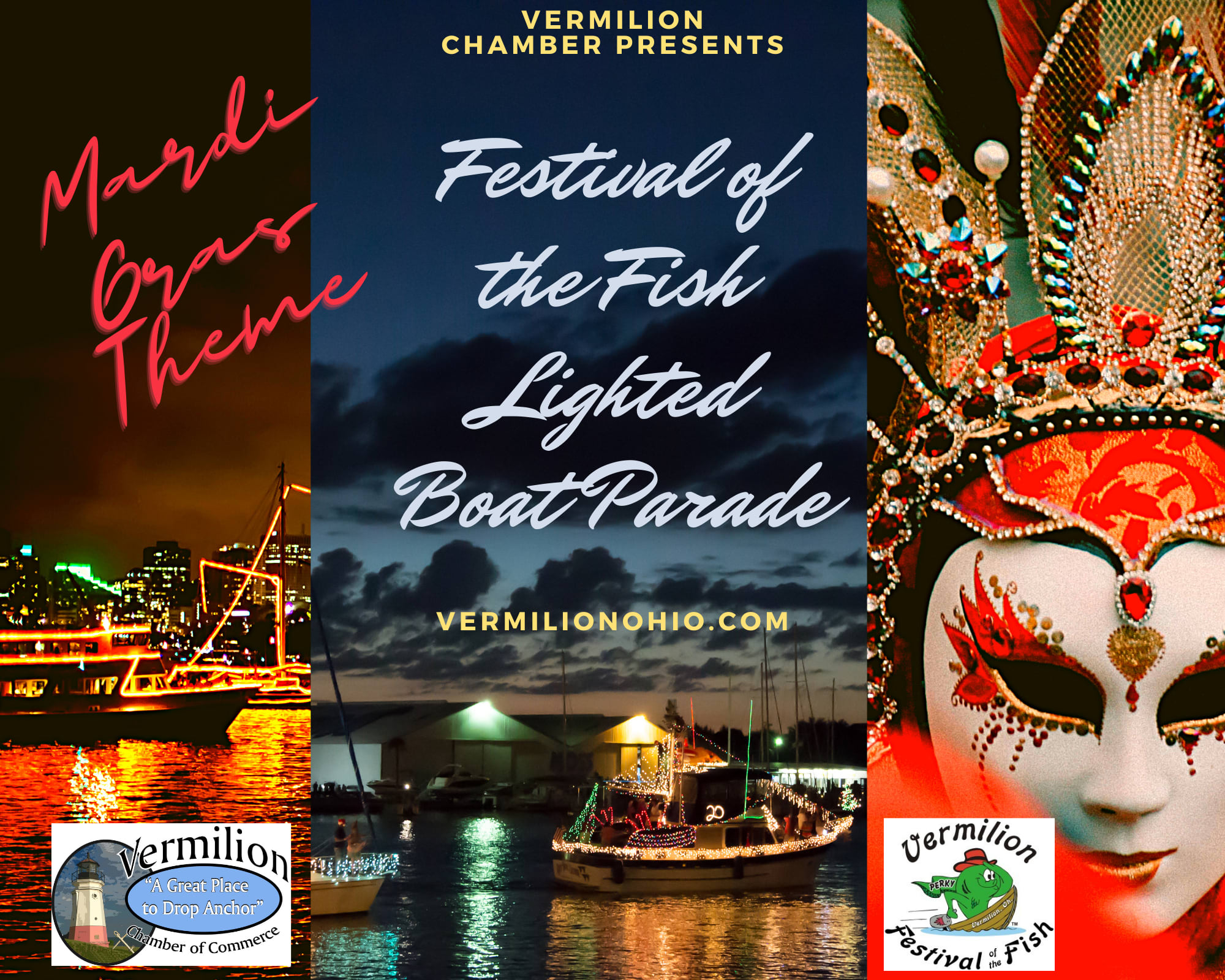 Parade Date: Saturday June 19, 2021 When: Dusk (approximately 9:30pm-10:00pm) Suggested Theme Mardi Gras CASH PRIZES 1st Place 2nd Place 3rd Place Contact Info: Vermilion Chamber of Commerce 5495 Liberty Ave Vermilion, OH 44089 Phone: 967-4477 or Barb Flaczynski 419-681-4278 Fax: 440-794-3536 E-mail: vermilionchamber1@gmail.comSponsors