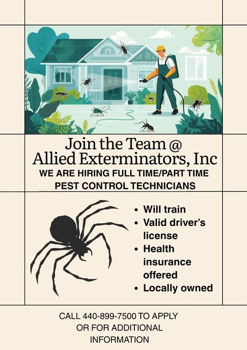 Allied Exterminators is hiring full time/part time Pest Control Technicians!